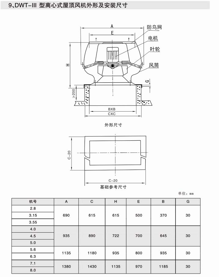DWT-Ⅱ、III型離心式屋頂排風機